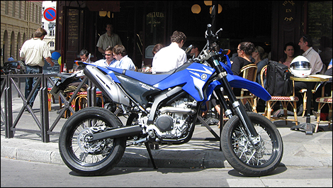 En ville, la WR éclipse tout prétendant lors d’un GP Feu Rouge, malgré ma masse, pourvu que je pousse bien au-delà de 6 000 r/min en accélération. On atteint aussi facilement les 130 km/h sur l’autoroute en poussant le moteur de cette façon, justement ce pourquoi il a été construit. Cette bête en veut, grâce à une injection électronique bien programmée qui assure une livraison continue de couple, sans point mort ni hésitation jusqu’à 9 000 r/min. En fait, on peut presque percevoir les traits de famille partagés avec les autres moteurs de Yamaha qui ont du souffle, les 600 et 1 000 cm3 me venant à l’esprit.