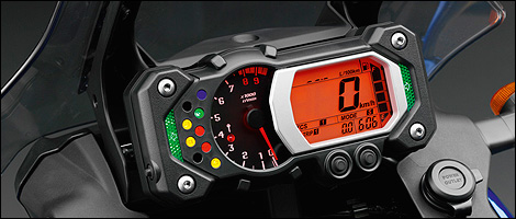 | On peut bien lire le tableau de bord quel que soit l'éclairage ambiant, alors que les gros chiffres du compteur de vitesse retiennent bien mon attention. Il n'y manque que l'indicateur du rapport de boîte engagé. (Photo: Yamaha) |
