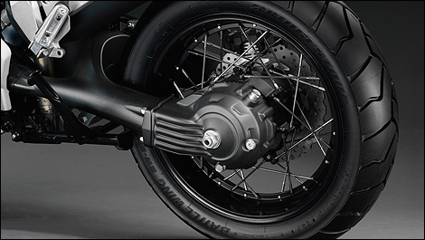 Vu les 190 mm de débattement aux deux bouts, on pourrait même abaisser la moto de quelque 50 mm pour faciliter l'usage urbain tout en conservant un débattement suffisant pour assurer son confort sur les pires rues.