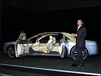| Lincoln Design Director Gerry McGovern unveiled Lincoln's new Continental Concept vehicle at the 2002 Los Angeles Auto Show. (Photo: Ford Motor Company) |