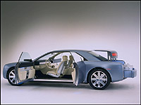 But while pulling cues from yesteryear Lincoln hasn't forgotten that new age buyers expect evolutionary technologies. The concept's trunk, however, is more revolutionary than evolutionary, boasting a most unorthodox but highly functional cargo system. Rather than the regular forward tilting, front hinged trunklid, the Continental concept incorporates a hydraulically powered decklid that follows a parallelogram as it opens remaining completely horizontal in the process. Lincoln says this keeps the tail lamps fully visible even when the trunklid is raised, enhancing safety, while providing superior access over traditional trunks.