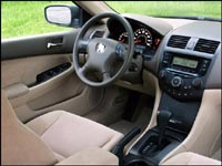 The 2003 Accord sedan is anything but bland. It makes its unique statement without being outrageous, stimulating discussion without offending. What I first noticed is how much better it looks in the metal than in photographs. Why don't pictures do it justice? Mostly due to a variety of complex curves best experienced in real life 3-dimension. Also, getting up close allows a full appreciation of the cars amazingly narrow body panel gaps. They've been reduced from 5.0 to 3.5 mm for the front door to fender, 5.5 to 4.0 mm for the front to rear door and 4.0 to 3.5 mm for the rear door to rear fender. Gaps between the bumpers and fender panels have been reduced to less than 1.0 mm or 'zero' in engineer-speak. While this improves aerodynamics to an impressive 0.30 coefficient of drag it also looks sensational.