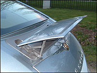 greater than 96 km/h (60 mph) and the cup holder which pops up from the center console. The retractable spoiler is electrically actuated and can be manually controlled should the desire arise. It is a great looking piece of hardware that is undetectable when not in use - what a great idea. I generally abhor spoilers plastered onto the rear of good-looking machines. I fully appreciate Chrysler's spoiler discretion.