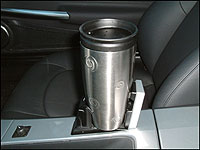 What I also appreciate, and admire for that matter, is the unique cup holder that many-a-journalist has bemoaned. Sure, this may not be the most practical or functional of designs, but that's not the point. The point - to those who get it - is that this apparatus is object-art. Thanks to some original design work and creative engineering, its two small fingers are capable of holding a sizeable traveling cup
