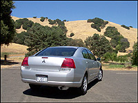 I've driven these roads during other press events, with cars professing to be sport-oriented, but few felt as adept at managing the variety of conditions thrown at them as the Galant. From twisting hairpins to long, sweeping arcs the midsize Mitsubishi, either sporting the base 16-inch wheels and tires on the ES or optional 17-inch alloys on LS and GTS, left little to be desired, all the while offering impressive braking capabilities and a smooth, comfortable ride. Most impressive was an almost complete exorcism of dreaded torque steer, that tug on the steering wheel that often corresponds to pressing the accelerator of a powerful front-drive car - an amazing feat considering the Galant V6's strong torque delivery. It results in a car that not only is fast, but totally controllable as well.