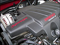 Of course, some of that adrenaline has much to do with what lies beneath. Pontiac's Grand Prix advertising is making the most out of the GTP's almost overwhelming supercharged V6, a 3.8-L unit producing 260-hp at 5,400 rpm and 280 lb-ft of torque at 3,600 rpm. That's a ton of power, even after factoring in its healthy 1,625 kg (3,583 lb) curb weight, resulting in a sub-7 second zero to 100 km/h sprint - that is if you can lock up the front wheels.