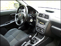 When I entered the WRX for the first time, I could definitely feel the rally influence. First of all, it's equipped with front semi-bucket rally type sport seats covered in distinct off-black knit and textured upholstery. In addition, it has a black leather-wrapped MOMO steering wheel and a black leather-wrapped gear selector. Both come standard in the 2004 model. If mo' MOMO is wanted, an optional shift knob is available.