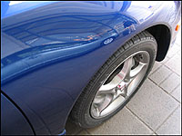 comfortable for my fanny, especially on the multiple hour drive down to Niagara Falls, and the extended wait I encountered at the Welland Canal while a tanker moseyed on by. In addition, it was nice to listen to my relaxing tunes on the 200-watt Panasonic audio system. Sound quality is slammin' and the speakers are superb. The buttons on the stereo system are quite small, however, similar to the system in the RAV-4 Chili Edition. It took a few moments for me to figure out which buttons did what, but after a little effort it was smooth cruising. I liked the stereo's remote control, and also the fact that the faceplate is removable - taking away any temptation from would-be thieves. The leather-wrapped steering wheel and shift knob (and bucket seats) are colour-coordinated to the exterior of the car, making it cute (not overkill) and functional. Toyota also adds Tsunami badging to the exterior, as well as the special floor mats and upscale owner's manual "wallet."