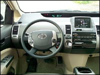 Évidemment, il est impossible de passer sous silence la planche de bord non conventionnelle de la Prius, qui se distingue notamment par un écran tactile offrant un nombre de caractéristiques pratiquement indéfinissable. On y retrouve tous les contrôles du système audio, de la climatisation, ainsi qu'un ordinateur de voyage très complet comprenant tous les détails relatifs à la consommation d'essence. Vous y retrouverez également un tableau indicateur très facile à consulter qui démontre un schéma en temps réel du mode d'utilisation mécanique. Pour le reste, la planche de bord possède plusieurs espaces de rangement, dont deux coffres à gants, ainsi qu'une instrumentation numérique placée à l'extrémité du tableau, qui permet au conducteur de ne pas quitter les yeux de la route en la consultant.