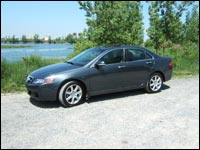 Japan know as the Honda Accord, Honda's best selling model worldwide. This being the case, it only makes sense that the styling of the TSX be so conservative. Other markets get a wagon version of the car and it certainly is not dull looking. That is not to say that the Acura is boring, its lines are classy, simple and display an aura of uncomplicated elegance that nearly insure that it will age very well. The Graphite Pearl paint was perfectly applied and the panels, aligned with perfection. Xenon headlights are standard however fog lights are a $691.10 option.