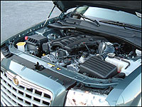 sculpted hood. Although I haven't sampled that unit, based on my experience with the 250 horses generated by the Limited's V6, I would question the 2.7's ability to adequately power the 1,689 kg (3,721 lb) Chrysler. It may in fact be a little embarrassing to roll up beside a Cadillac CTS or Lincoln LS in the aggressive looking 300, and then need a full 11-seconds to hit 60-mph (96-kph) from a standing start. Chrysler rates the Limited at a more acceptable, albeit somewhat lackluster 9-seconds for the same run.