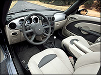 | A unique two-toned interior treatment sets the drop top PT apart from its fixed roof siblings. (Photo: DaimlerChrysler Canada)
