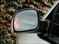 | For safeties sake, Caravan's standard Door Alert system activates the appropriate signal lights when either the manual or power sliding side doors are opened. The turn signals integrated into the side mirrors (shown) are a dealer-installed option. (Photo: DaimlerChrysler)