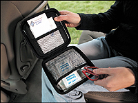 | An overhead first aid kit with gauze pads, cleansing towelettes, insect sting relief pads, trauma dressing, adhesive strips, and more, is even offered. (Photo: DaimlerChrysler)