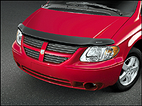 | The updated Caravan is perfectly timed for the 20th anniversary of the minivan as we know it. This photo features a dealer-installed Mopar wind deflector. (Photo: DaimlerChrysler)