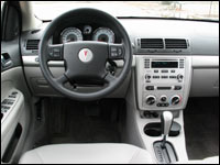 The redesigned dashboard is much better looking and has less of an industrial flair compared to those in the Cavalier and Sunfire. The gauges are chrome-rimmed with red lighting. Actually, this lighting will only come on when the luminosity sensor located on the dash deems that it is necessary. However nice they might be, the fact that there is no engine temperature gauge boggles my mind. The HVAC controls are simple and user friendly. The fan however, is very noisy even at its lowest setting.