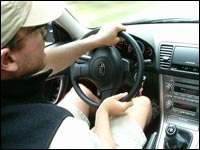 All Outbacks for 2005 get a quicker steering rack at 16.5-to-1 (the Legacy GT's is even tidier at 15-to-1, hint, hint...). It felt better than last year's car, but the raised suspension and 55 series Bridgestone Potenza RE32as were all-seasons, so a certain amount of vagueness has been left in the steering feel. Where we come to expect added weight with each new car launched, Subaru has actually reduced the curb weight across the Legacy and Outback lineups. The result is a really balanced chassis that can be flicked to under-, or oversteer, based on your wishes at the controls. I would liken the 2.5 XT to a bigger WRX, but I know I would end up with a bunch of unwanted emails.