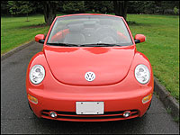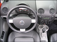 glad that for the 2005 model year, VW got their musical act together and put a CD player in as a standard feature. Now I can finally let the fact go that the previous model year came with a tape player for $37,000! I promise, this is the last anyone will ever hear about that beef. But on the down side, the system wasn't all that great. I found that the right-hand speakers rattled when the bass was any higher than level 2. This is quite unfortunate because when I'm driving a hot car, on a hot day, around hot guys (sorry gentlemen) with the top down, the last thing I want to do is embarrass myself by blasting hot tunes on a not so hot, rattling stereo system. On the bright side, I didn't hear the rattling when I was driving on the highway because the wind drowned it out. I guess you can't win them all. Generally, I didn't have a problem with staying warm when the top was down. It's May and the West Coast weather is mild and warming up day by day. Although, when night time came, it became chilly. Even with the standard leather seating surfaces with some of the best butt warmers in the industry, I was still cold. But for those who know me, I don't have the best circulation and am frequently chilled.
