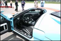 Braking is phenomenal. I had the opportunity to lap both GT models several times, one was red and the other one was painted in Gulf's colours. At the end of the afternoon, the rear tires of the latter were bald, to the point of losing adherence, and the car was fishtailing at the slightest excessive solicitation of the gas pedal. In fact, a fellow journalist lost control of the GT, but gladfully regained it. Exiting a corner right before the straightway where I was about to push it hard, I felt the rear end slipping. The GT is so well balanced that it tells you in a split-second what you're going to do; by lightly lifting off my foot from the gas pedal, I could easily regain control of the rear end and blast off down the straight.