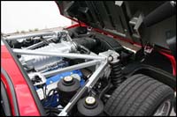 according to the engineers, it could easily attain 700. It provides 500 lb-ft of torque; those are the same numbers than the 7.0-liter engine that allowed them to win the 24 Hours of Le Mans in 1966 and 1967. This new engine is entirely made in aluminium. It's coupled to a Ricardo 6-speed manual gearbox and a limited-slip differential. The result is an easy transfer of the power with little wheel slip, and allows for confident corner exits, if the tires are in good shape. Even the shift linkage feels surprisingly light for such a machine, so it's easy to master. Shifts are short and easy to guide. Braking is assured by four-piston Brembo calipers and huge vented discs all around.