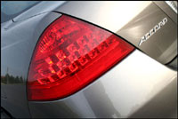 hopes that you won't mistake it for another midsize automobile, or spend days looking for it at the airport multi-story carpark, for 2006, our hero gets a new tie with a bolder pattern, and a different but still perfectly starched shirt to help it stick out a little more, but keeps the trusty gray two-piece suit that it was given in 2003. Up front, the similarities to the new and improved car are minor at best; it has grown a thin, chrome mustache on its upper grille lip, to put it more in line with the space-cadet Civic, and sports a revised air dam with extra holes for improved breathing. So far, things have been subtle, but the more obvious changes can be seen from behind, where the makeover was concentrated.