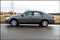 it packs power windows and mirrors, keyless entry, ABS brakes, plus side and curtain airbags for $2,800 less. Can't bare the gray? Upgrade to the top of the line EX four-cylinder, and that pads the spec list with leather, and your choice of wood or alloy trim, dual zone digital climate control, and a six-disc CD player amongst other goodies. Throw even more money at the Accord and you can upgrade your engine to the 244-hp V6, which gains VSA stability control too, and the option of voice-activated navigation system. And let's not forget the hybrid, which is both the fastest Accord sedan and the most efficient one to boot, so you'll at least get some of your money back on fuel savings.