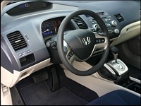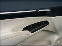 The Hybrid gets some items that are extra on other Civic models, such as an auto up/down driver's side window and auto up window on the passenger's side, power door locks, heated and remote controlled body-colour sideview mirrors, body-colour door handles, cruise control, steering-wheel mounted cruise and audio buttons, variable intermittent wipers, an air filtration system, keyless entry that includes a trunk release and an engine immobilizer, front and centre console 12-volt adaptors, and an upgraded 160-watt six-speaker AM/FM/CD audio system that includes an auxiliary jack for an iPod - the latter convenience exclusive to the Hybrid.