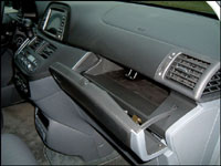 | Oddly-shaped glove box maximizes storage space. (Photo: Rob Rothwell, Canadian Auto Press) |