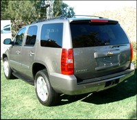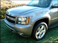 than last year's and a rear track wider by 254 mm (1 inch). In overall length, the Tahoe has grown by approximately 50 mm (2 inches). But it's not all about getting bigger; the ride height has been dropped by 127 mm (0.5 inches) on the two-wheel drive (2WD) version and 254 mm (1 inch) on the four-wheel drive (4WD) setup. This was done to ensure the Tahoe meets the highest government crash test ratings, but fear not off-roaders; the 4WD Tahoe retains its 229 mm (9 inches) of minimum ground clearance. Space reduction also applies to exterior panel gapping, which for 2007 is slimmed to only 4-millimeters. A close examination of the Tahoe's body failed to reveal a single misalignment or inaccuracy. The portals in the Tahoe's exacting shell opened and closed with the requisite "whump" of a premium automobile and imparted a sense of solidity. Visually,  | | From every angle the new Tahoe pleases. (Photo: Rob Rothwell, Canadian Auto Press) |