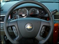 than the 2006 dash. The design and layout of the new gauge package is outstanding, setting a new standard for Chevy and GM truck products. Not only is the layout symmetrical and engaging, it incorporates build quality vastly superior to anything previously found in full-size Chevy and GM SUVs. Hard plastic trim framing controls and gauges is gone in favour of modern, cohesive construction appearing more European than domestic. Fit and finish in the new cabin is first rate and simply indistinguishable from the imports thanks to plenty of premium-touch surfaces and materials, combined with restrained but tasteful styling elements. The only deflection from a perfect bulls-eye is the presence of small buttons for controlling HVAC (heat, ventilation, air conditioning) functions. Their look is absolutely dynamite, however adjusting HVAC settings would be simpler and more straightforward if it had larger dials - such as the beauties assigned to headlight operation and GM's shift-on-the-fly 4WD. Speaking  | | Fit and finish in the new cabin is first rate and simply indistinguishable from the imports thanks to plenty of premium-touch surfaces and materials. (Photo: Rob Rothwell, Canadian Auto Press) |