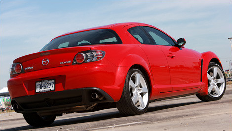 However, in tighter spaces, like in a shopping-center parking lot on Saturday, getting in and out from the back of the RX-8 is a pain; we're squeezed between the open doors, trying to pull out the kids from the rear seats while being careful not to bang the doors on the car right beside us.