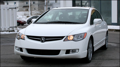 How big is little? Well, in the case of this white-colored, dressed-up Civic, also known as the Acura CSX, we're almost talking about a midsize car. With an aggressive body kit and rear wing spoiler, this little Japanese athlete appears to be on steroids. Not that there's anything wrong with that -- especially with the 197-hp i-VTEC engine under the hood.  | | The CSX is built in Alliston, Ontario. | Hospitable interiorThe front doors open wide and allow easy access to the interior. However, in order to close them, you need to stretch your body and grab the storage bin instead of the armrest -- which doesn't make sense. Acura designers should have inverted said armrest and the power window controls to make this action easier and more intuitive. In the back, you have to pay attention to the low, swooping roofline so as not to hit your head. On the plus side, the flat floor allows you to sit three people on the rear seat, namely two teens and a kid. In fact, both of my teenagers found ample room and comfort. The front seatbacks include storage pockets, while the doors offer convenient bins. Also, the center armrest incorporates two cupholders. The audio unit delivers exceptional sound quality. However, I was unable to fully enjoy it because of the complex settings and markings. Soundproofing is usually good... provided that you're driving in sixth gear. As for the climate control system, I found it up to the task and easy to program.Spacious trunkI liked the generous trunk capacity and the split-folding rear seatback. You can slide in many different objects, including fairly long items. The low cargo threshold also comes in quite handy, especially when you're holding several grocery bags. My only complaint about the trunk is the absence of an interior handle: you must close the lid from the outside at the risk of getting your hands dirty. About the cockpitThe driving position is good, although I was disappointed to find out that the cushion is not adjustable. Both front seats are comfortable, but the slippery leather upholstery forces you to reposition yourself from time to time. Forward visibility surprised me: on one hand, the dashboard configuration offers a clean view straight ahead; on the other hand, as soon as you turn your head, the A-pillars will ruin it. You have to use the small glass portion between the pillars and the mirrors to enjoy safe, optimum lateral visibility. Speaking of mirrors, they are appropriately sized, but they tend to become dirty in a hurry. Sludge and water drops are splashed against the surface when you drive. Obviously, Acura will have to revise their aerodynamics.  | | The mirrors tend to become dirty in a hurry. |