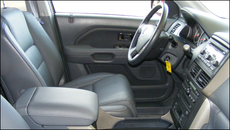 Large sheets of glass line all four sides of the Pilot, treating occupants to excellent all-around visibility. Front seats offer plenty of support, which is complemented by generous headroom but only adequate legroom. Unfortunately, the tilt steering column does not telescope and the foot pedals are non-adjustable. These shortages may impede certain body shapes from finding the ideal driving position, although I had no such difficulty.