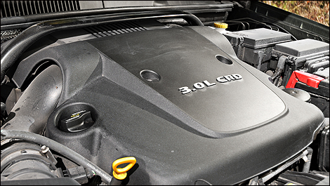 The 3.0-litre, 24-valve CRD V6 develops just 215 horses but a stump-pulling 376 lb-ft of torque from 1,600 to 2,800 rpm. The engine's redline is a slow 4,500 rpm, but that's normal for a diesel. At a steady 100 km/h, the V6 is spinning at 2,200 rpm.