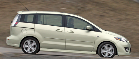 4+2Mazda defines the 5 as a 6-passenger vehicle. True, there are three rows of seats, but the third one is not suitable for any adult; indeed, you won't find enough room for your legs and feet. So, much like the old Jaguar E-Type was a 2+2 sedan, the Mazda5 should be labelled a "4+2" minivan, meaning it can sit four adults and two children.