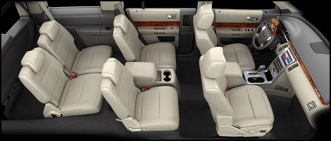 The 2009 Flex's cachet is that it has as much interior volume as a minivan, has three rows of seats but looks nothing like a minivan. Motivating the Flex is Ford's 260 hp 3.5L V6 mated to a 6-speed automatic transmission. An intellignet AWD will be an optional as will be interior refrigerator, second-row footrests, Ford Sync in-car communications and entertainment system, a 2,300-song personal juke box and a Multi-Panel Vista Roof.