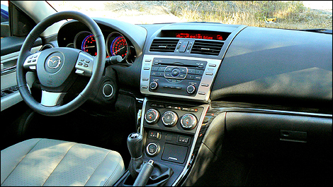 A completely fantastic interiorSame deal inside- and the big story on the latest 6 is its new interior. The tester came with a Bluetooth phone, Bose audio, CD changer, auto dimming rearview and side mirrors, powered and heated leather seats, keyless access with engine start button, and automatic climate control.