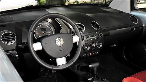 The New Beetle is a polarizing machine with regard to styling. Even the interior manages to draw stares despite some obvious flaws. The top of the dashboard is seemingly endless, the controls are user-friendly and the instruments feature cool-blue illumination. Overall, the layout is modern and pleasant to look at.
