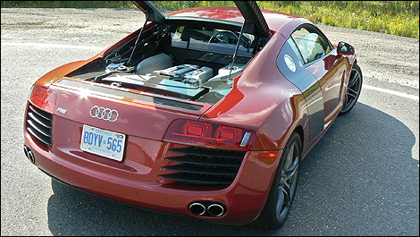Of course, thoughts of playing nice are pinned to the rearmost portion of the brain when drivers give the R8 the boots. Propulsion here comes from