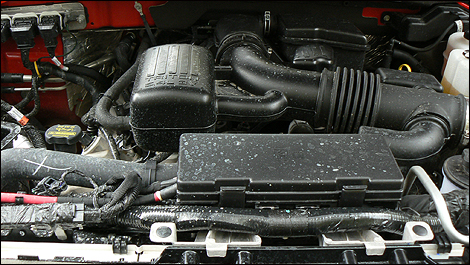 Raptor's heart is a 320 horsepower, 5.4 litre V8 teamed up with a six-speed automatic transmission. The engine lacks the bite to match the bark from its upgraded dual exhaust, and acceleration is far from breathtaking. Raptor isn’t a hot-rod by any means-- though that's not really the point. Shoppers after more sauce should note that an optional 6.2 litre V8 with about 400 horsepower is en route to the Raptor’s engine bay next year.