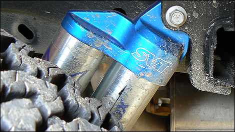 | Hit the dirt, and Raptor's special internally-valved Fox Racing shock absorbers do a beautiful job of keeping body movements controlled. |