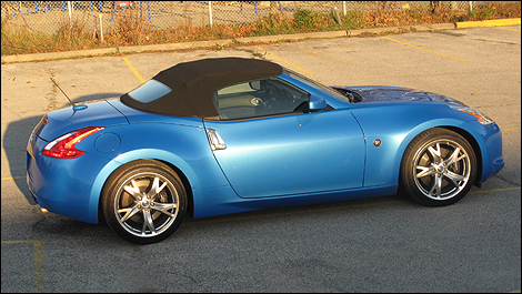 2010 Nissan 370Z on the other hand proudly flaunts old-school roadster stylings and a fabric roof.
