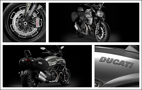 The 2013 Ducati Diavel Strada comes in two trim levels: Classic and Carbon. The latter features carbon fibre tank covers, passenger seat cover and front fender, as well as Marchesini forged aluminum wheels.