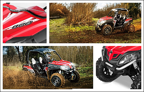 The 2014 CF-Moto Snyper 800 EX trumps its closest competitors in terms of ground clearance and suspension travel (both over 11”) courtesy of ELKA shock absorbers and aggressive tires on 14” aluminum wheels. It also benefits from hydraulic disc brakes.