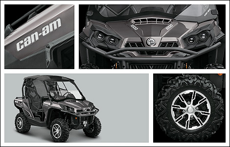 Standing 3,004 mm long (on a 1,924-mm wheelbase), 1,489 mm wide, and 1,829 mm tall, the 2014 Can-Am Commander Limited 1000 boasts a dry weight of 585 kg (1,295 lb). It also provides 279 mm (11”) of ground clearance for easier riding on obstacle-laden trails, as well as 680 kg (1,500 lb) of towing capacity.