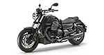 Other features on the Audace include a leather-like seat with exposed red stitching, rear shocks with separate gas reservoir, light alloy wheels personalized with the Moto Guzzi logo, and minimalist black mirrors.