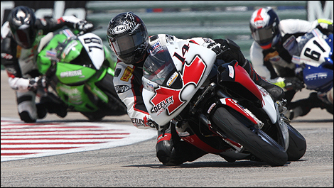 | Buell did not supply pictures of the 1125RR. Here is the best shot we have of Steve Crevier aboard a 2009 1125R prepared for the Superbike class of the Part Canada Superbike Championship. |