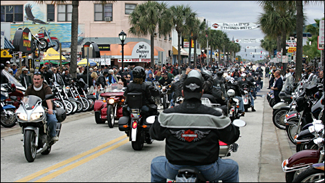 The Great Motorcycle Spring Ritual is coming up next week, and not a second too soon, as it signals for us Great White Northerners the imminent arrival of riding weather. For motorcycle writers, Bike Week is an opportunity to get the jump on the riding season and go try out a few machines. We then put our findings on-line, in time to maybe help out in the selection of your new machine. Moto123.com is sending a rider/writer (Myself!) and a photographer to the 2009 edition of this annual orgy of people and bikes. We will report on new models, racing, and the odd testosterone- and alcohol-fueled goings-on that always happen at this "Family-oriented" (according to local civic leaders...) event. Look for our daily Daytona Diary starting March 3.