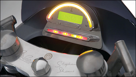 | Fururistic programmable display and warning lights, and dedication signature from Stephanie Sheene, Barry's long-time friend and wife. (Photo: Iconsheene.com) |