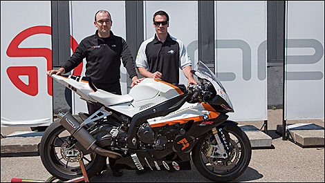 ICAR promoter Laurent Madore, with former Canadian Superbike Champion and BMW Canada lead rider Francis Martin. Madore gave some thought to going on-track as a passenger with Martin, but chose to watch rather than be part of the show. (Photo: Philippe Champoux/Moto123.com)